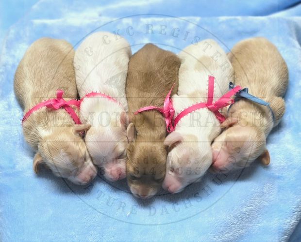 We take great pride in our breeding process, which starts with carefully selecting our breeding pairs. We only breed miniature dachshunds that meet our high standards for quality, health, temperament, and conformation. Our miniature dachshunds are all raised in home, in a loving and nurturing environment, receive regular veterinary care, and have frequent socialization with humans young to old and animals big to small.